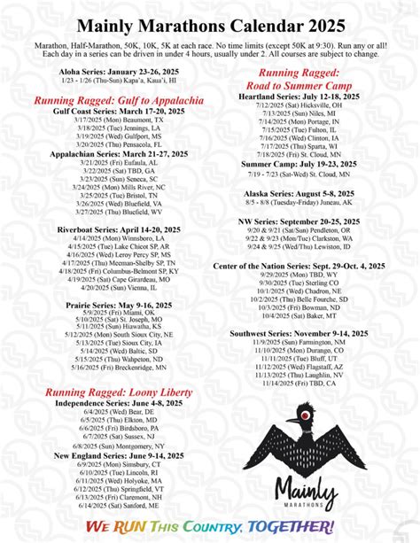 Calendar Mainly Marathons