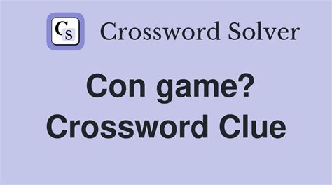 There are related clues (shown below). Web con game is a crossword puzzle clue that we have spotted over 20 times. ('sting' can be a synonym of 'con game') this is all the clue. Web 17 rows this crossword clue con games was discovered last seen in the december 27 2022 at the newsday crossword. A further 9 clues may be related. A further 45 clues may be related. This crossword clue was last seen on april 17 2023. We will try to find the right answer to this particular crossword clue. Today's crossword puzzle clue is a quick one: This is all the clue.