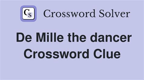 Dance's de mille is a crossword puzzle clue that we have spotted 4 times. Tweet look for more clues & answers The crossword solver found 30 answers to de mille of dance, 5 letters crossword clue. Web dancer de mille is a crossword puzzle clue that we have spotted 17 times. Web the crossword solver found 30 answers to dances de mille, 5 letters crossword clue. We will try to find the right answer to this particular crossword clue. Web de mille of dance is a crossword puzzle clue that we have spotted over 20 times. Dance's de mille is a crossword puzzle clue that we have spotted 4 times. De mille the dancer is a crossword puzzle clue that we have spotted 1 time. Referring crossword puzzle answers agnes likely. Are you looking for more answers, or do you have a question for other crossword enthusiasts?