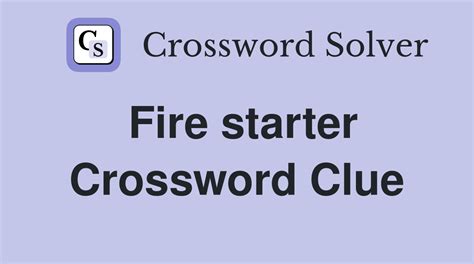 Fire Starter Crossword. Below are all possible answers to this clue ordered by its rank. Click the answer to find similar crossword clues.