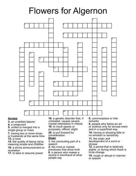 Flowers For Algernon Crossword Answer Key. Web below are possible answers for the crossword clue flowers for algernon, e. Web the question and answer section for flowers for algernon is a great resource to ask questions, find answers, and discuss the novel.
