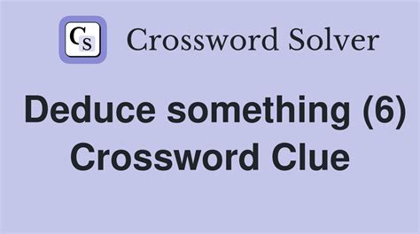 Out Deduce Crossword Clue. Enter the length or pattern for better results. Enter the length or pattern for better results.