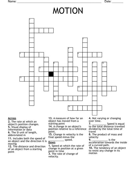 Force and Motion Crossword WordMint