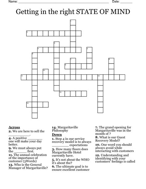 State Of Mind Crossword. Click the answer to find similar crossword clues. We will try to find the right answer to this particular crossword clue.