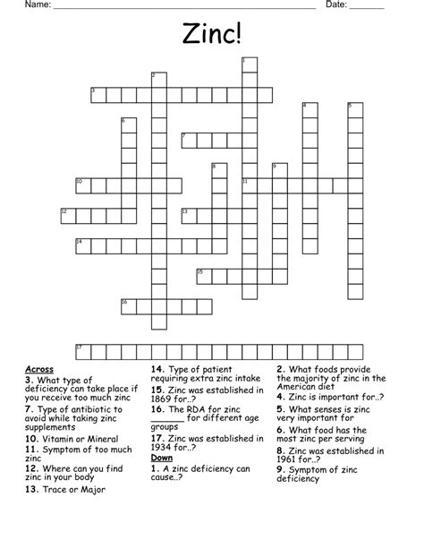 This page shows answers to the clue zinc, followed by ten definitions like “ zn. Is a crossword puzzle clue that we have spotted 1 time. There are related clues (shown below). Web we found one answer for the crossword clue of zinc. Type the crossword puzzle answer, not the. This page shows answers to the clue zinc, followed by ten definitions like “ zn. The crossword solver finds answers to classic crosswords and. (i've seen this in another clue) this is. 1 answer to this clue. (cosmetics ingredient), 8 letters crossword clue. Solve your zinc crossword puzzle fast & easy with the.