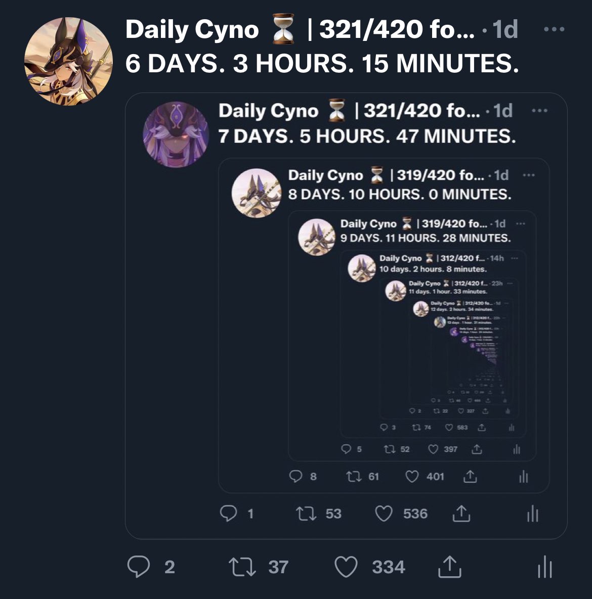Daily Cyno ⏳ 330/420 for c0 r1 cyno! 💖 on Twitter "5 DAYS. 3 HOURS