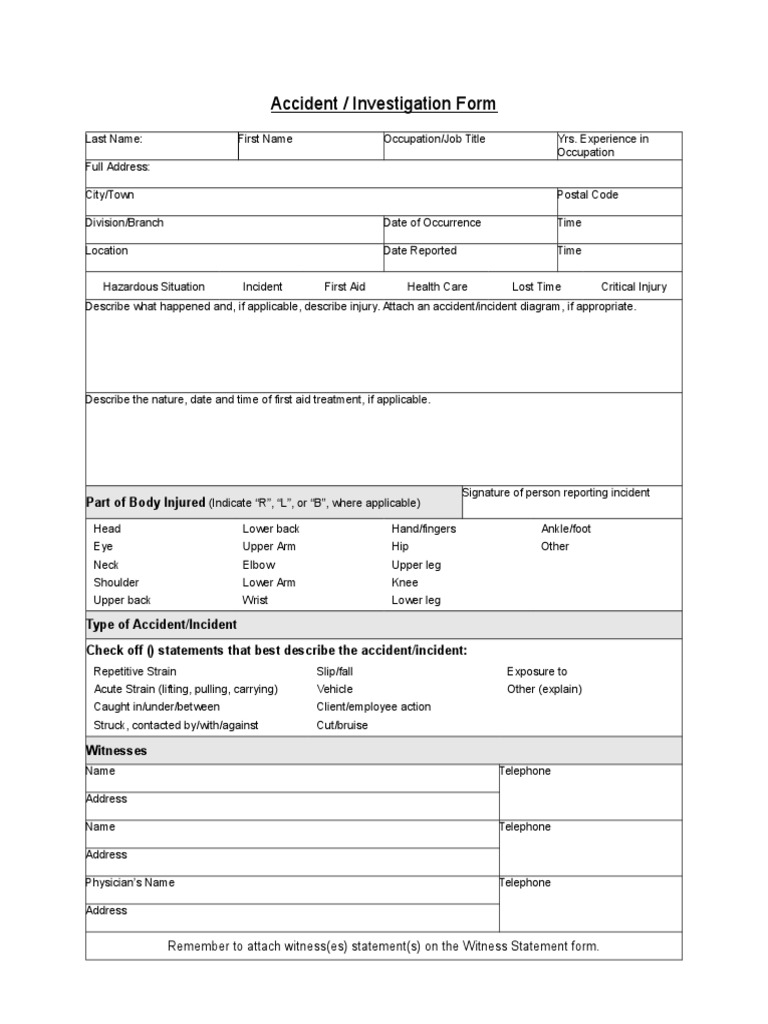 Accident Investigation Form Fill Out, Sign Online and Download PDF