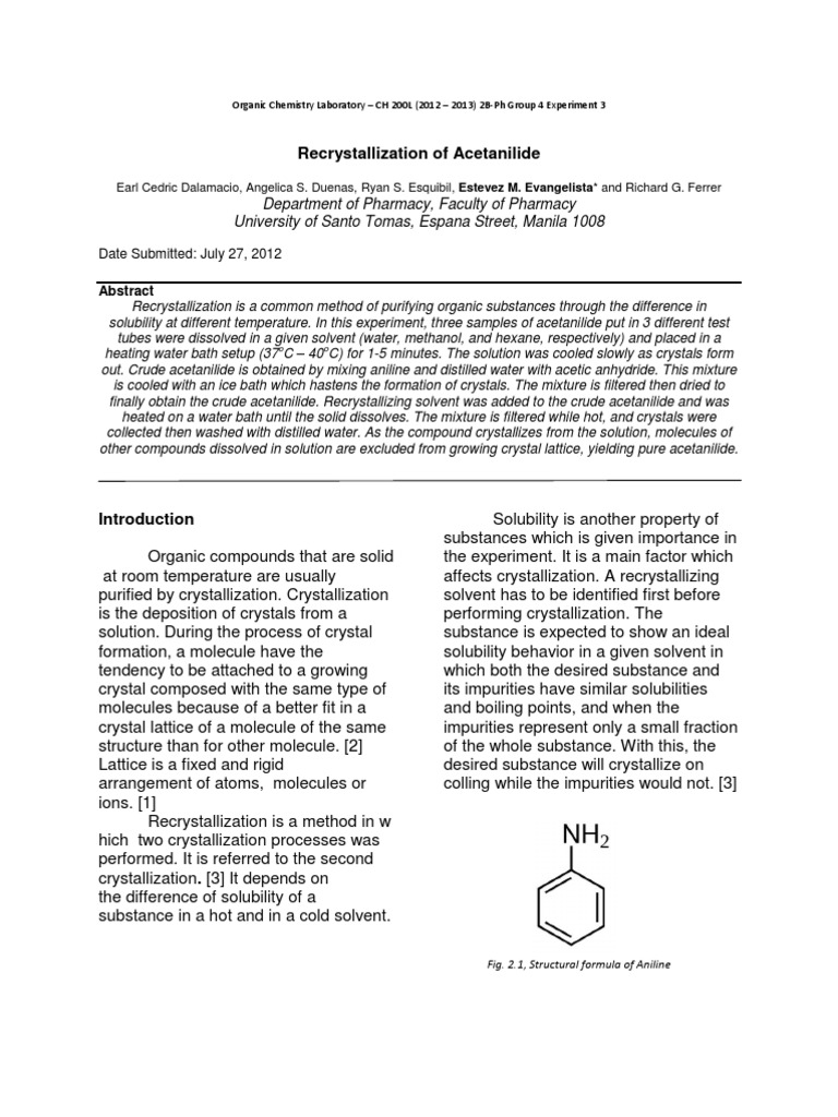 Recrystallization of Acetanilide Chemistry) PDF Solubility