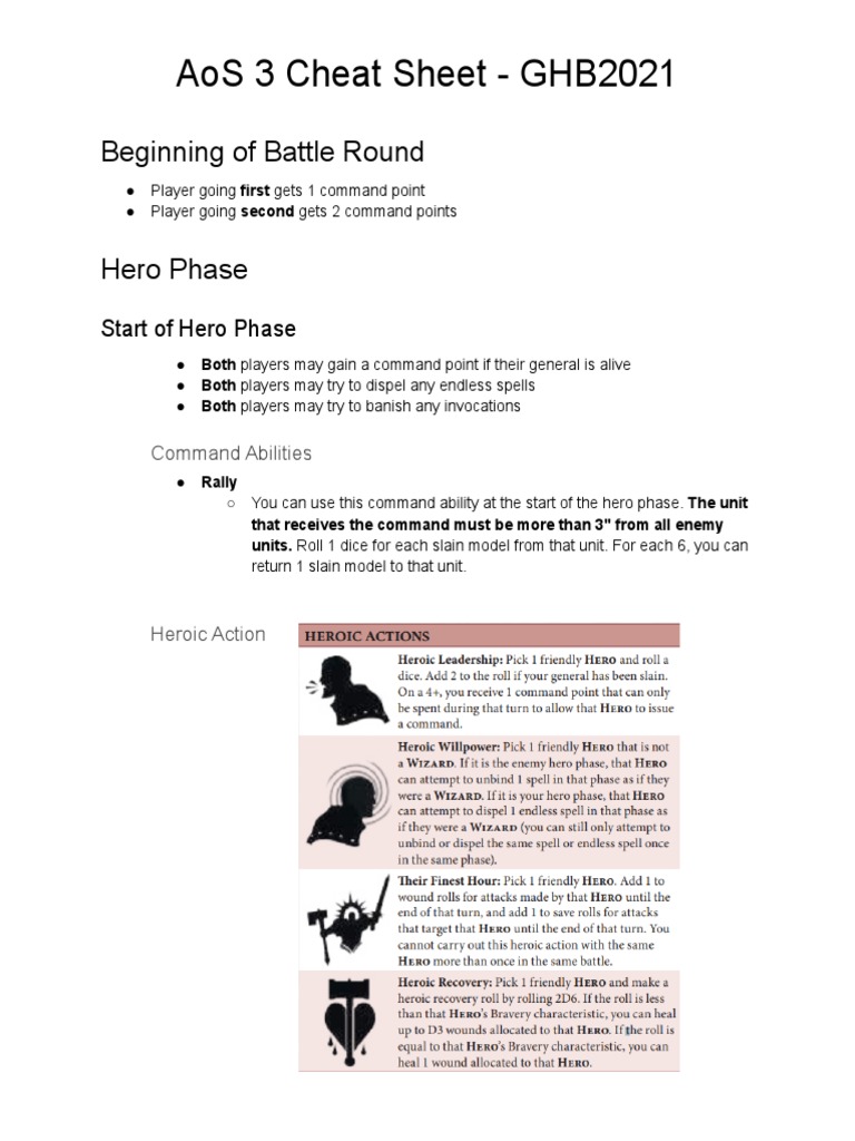 Aos 3 Cheat Sheet Ghb2021 Beginning of Battle Round PDF Battles