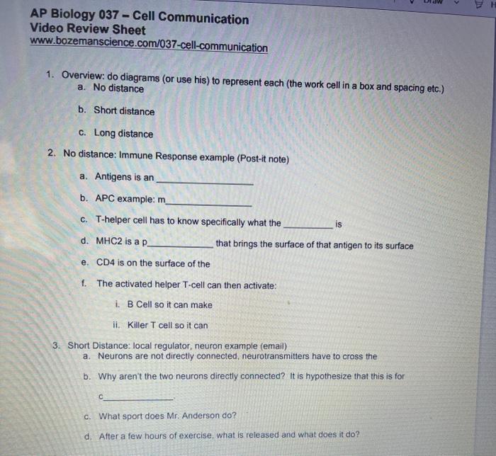 Web share free summaries, lecture notes, exam prep and more!! Cell communication video review sheet.