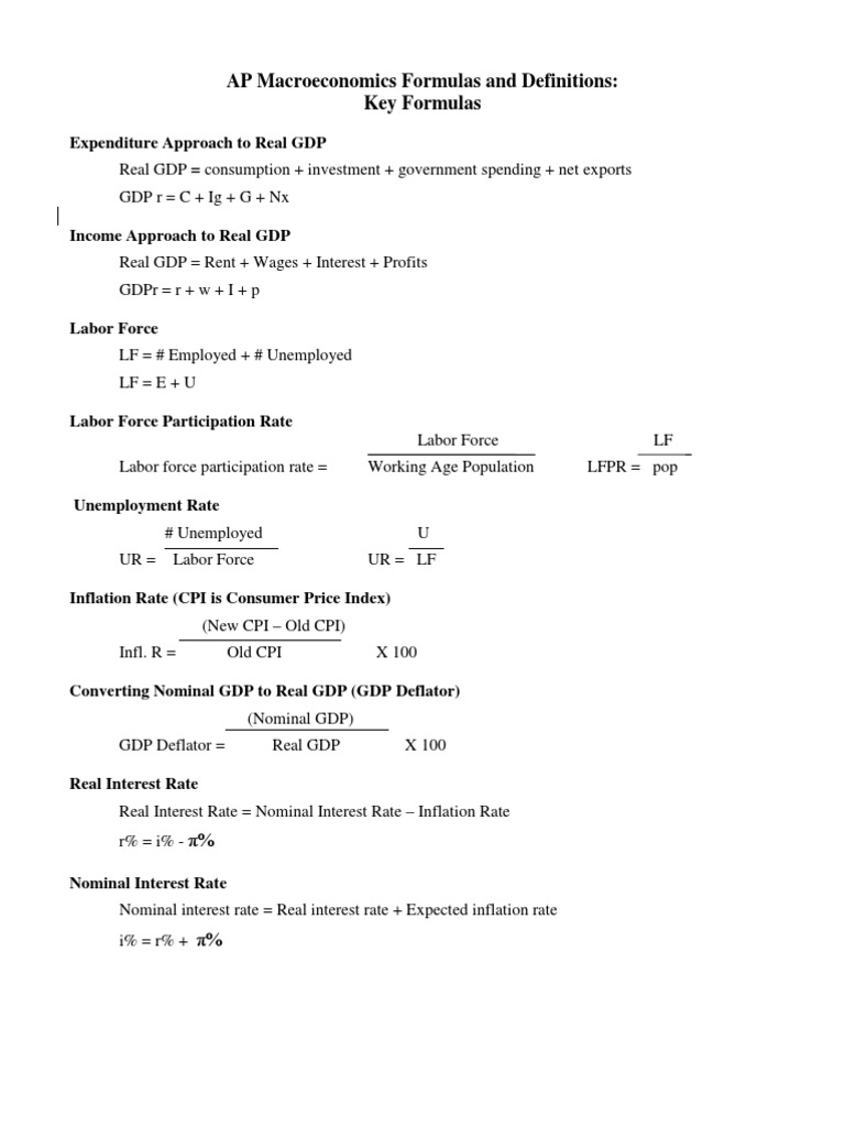 AP Macroeconomics Formula Sheet