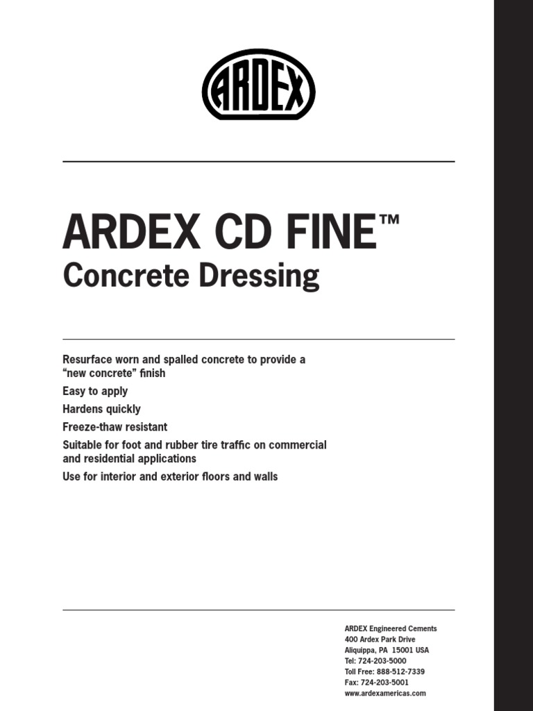 Web ardex cd™ concrete dressing. Resurface worn and spalled concrete to provide a “new concrete” finish;