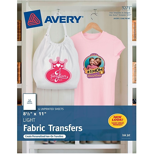 Avery® 3271 Inkjet Light Fabric Transfer Paper, 81/2" x 11", 6/Pack