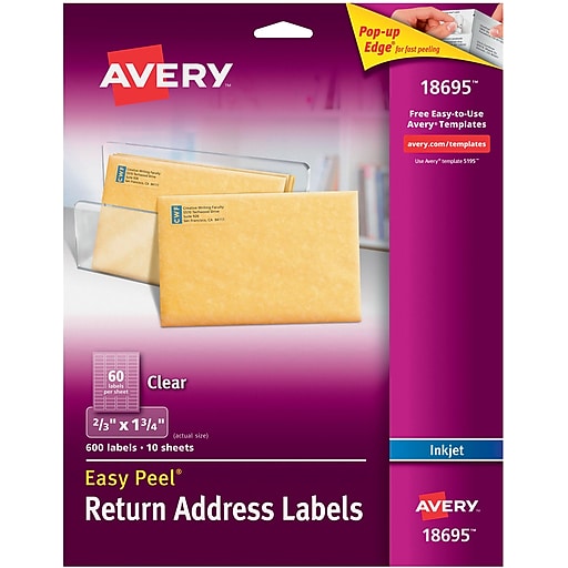 Avery 18695 Easy Peel 2/3" x 1 3/4" Clear Inkjet Printer Return Address