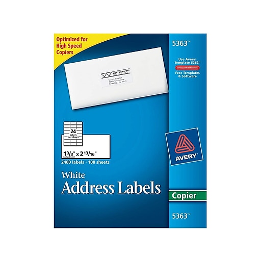 Avery 5363 Copier White Address Labels 1 3/8" x 2 13/16" 100 Sheets