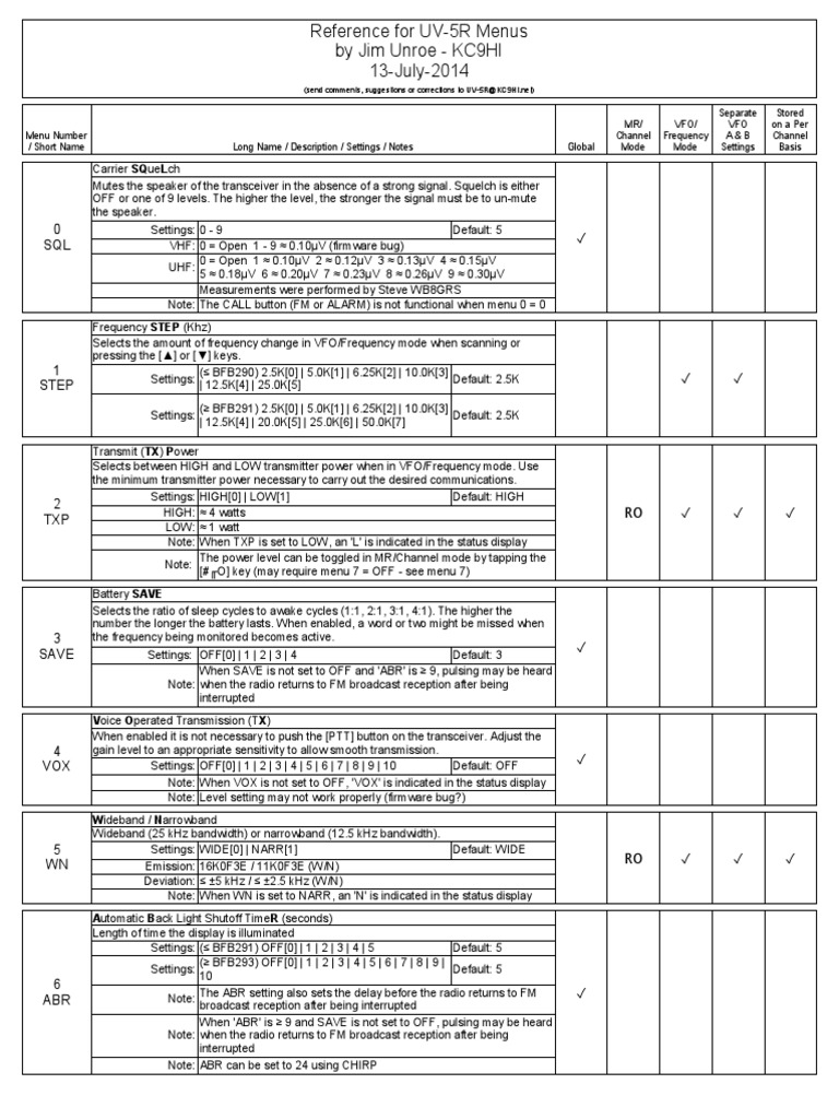 Baofeng Uv-5R Programming Cheat Sheet - Web baofeng cheat sheet.