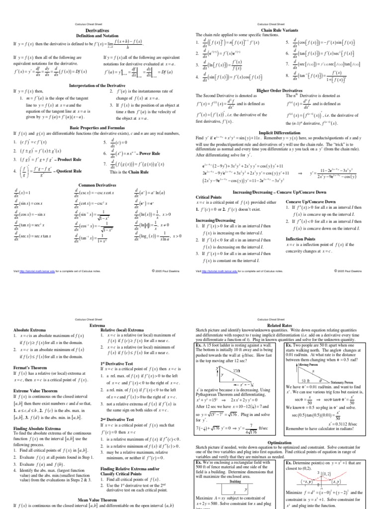 Ago Darkato Recommend Calculus Cheat Sheet Does.