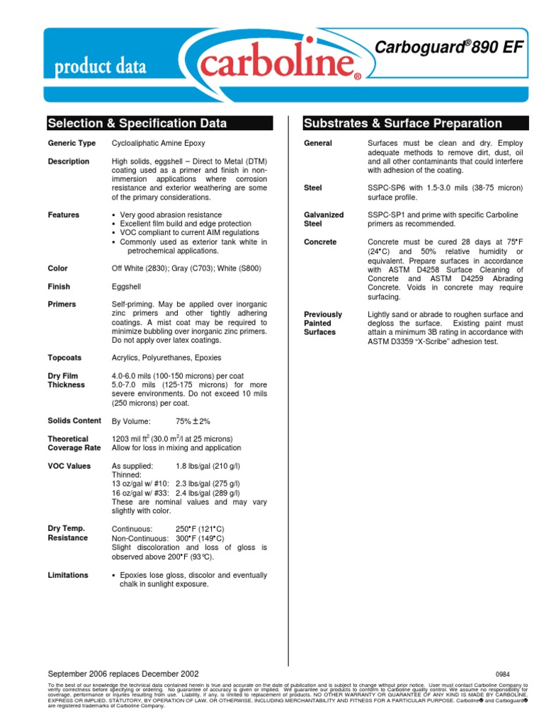 Carboguard 890 EF PDS 906 PDF Paint Chemistry