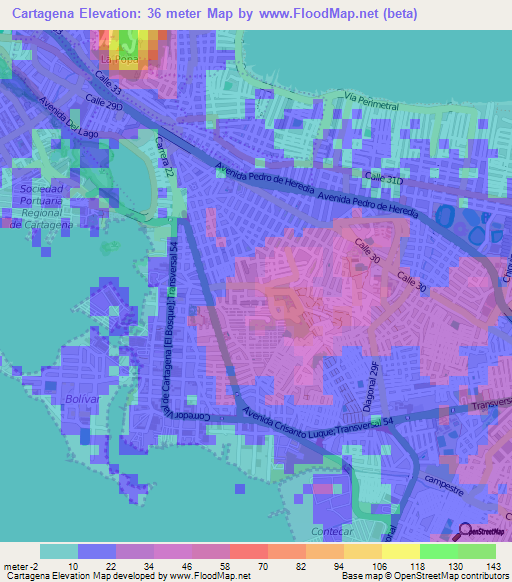 Elevation of Cartagena,Colombia Elevation Map, Topography, Contour