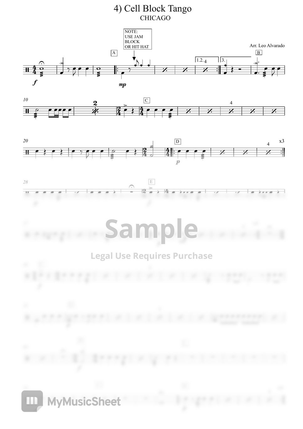 John Kander Cell Block Tango (CHICAGO MUSICAL) Sheets by Drum