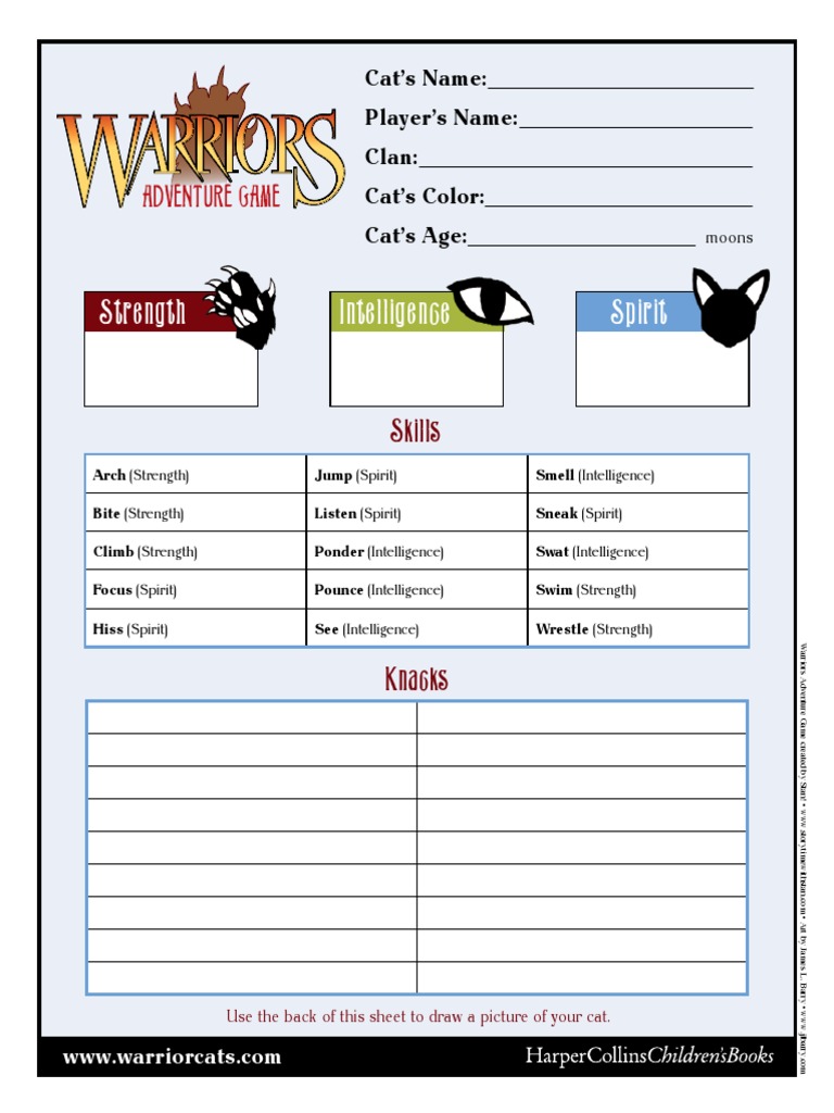 Warrior Cats Character sheet Warriors (Novel Series) Cats