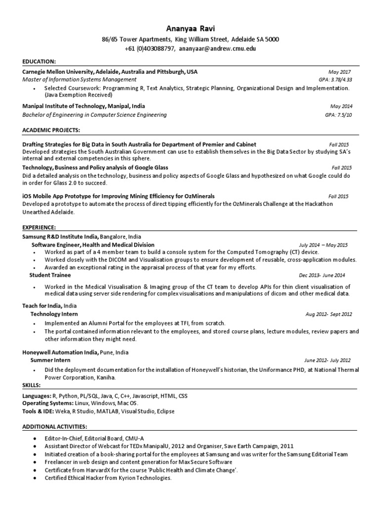 Resume_Ananyaa Ravi CMU Carnegie Mellon University Technology