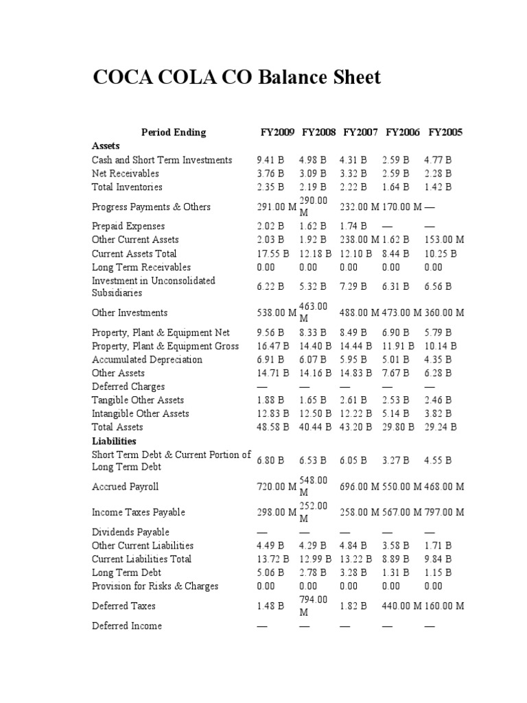 View Coca Cola Balance Sheet Images Eddie B. Chance