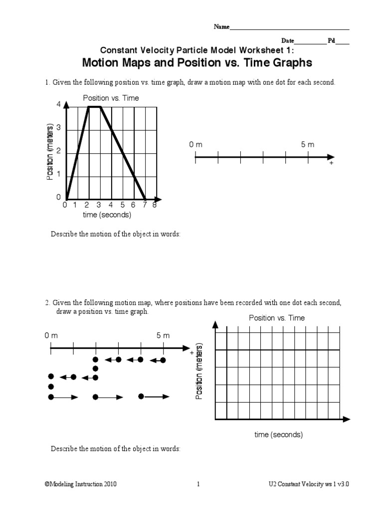 Constant Velocity Particle Model Worksheet 3 Position Vs Time Graphs