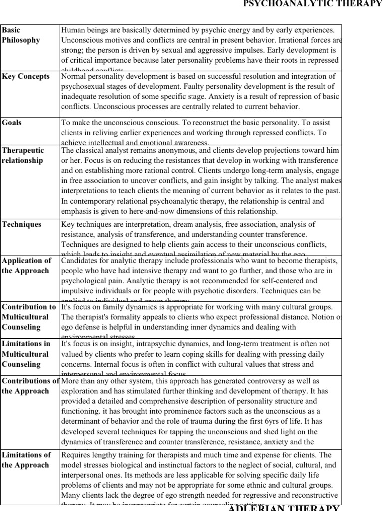 Counseling Theories Chart Psychotherapy Psychoanalysis