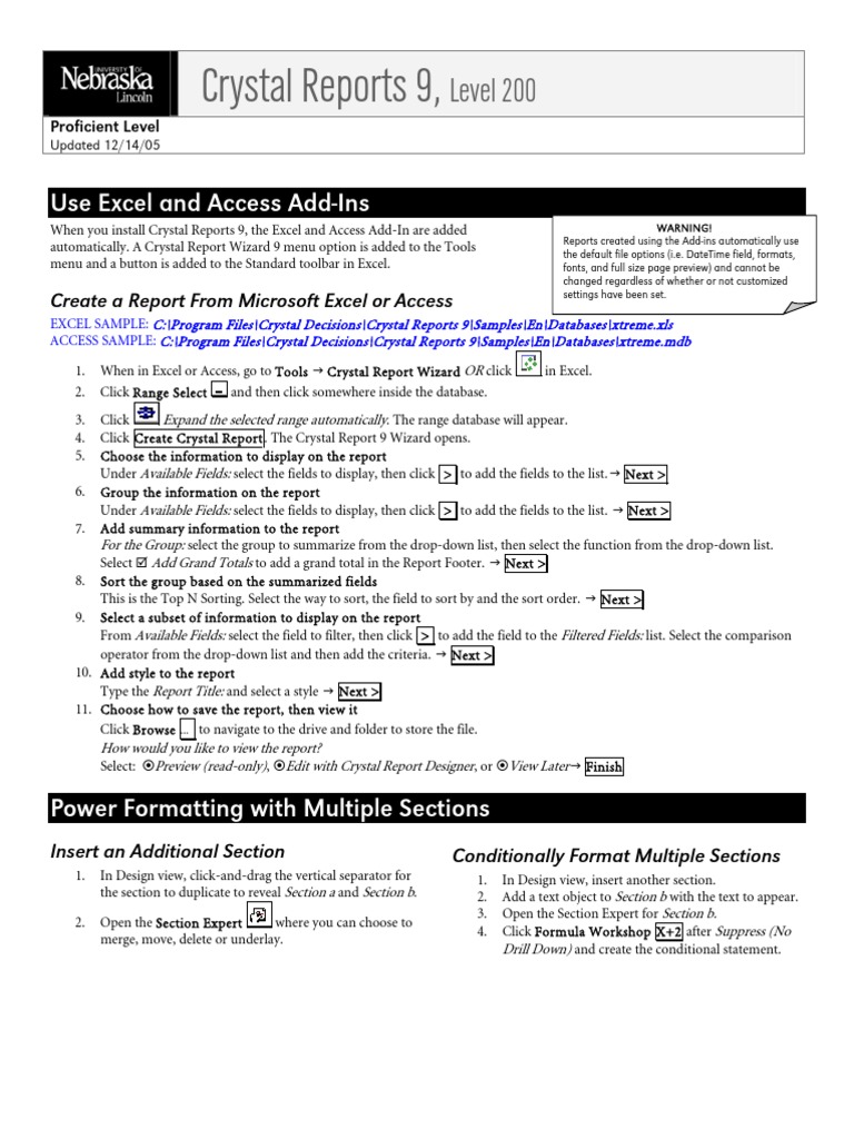 Crystal Reports Cheat Sheet 200 Microsoft Excel Computer Data