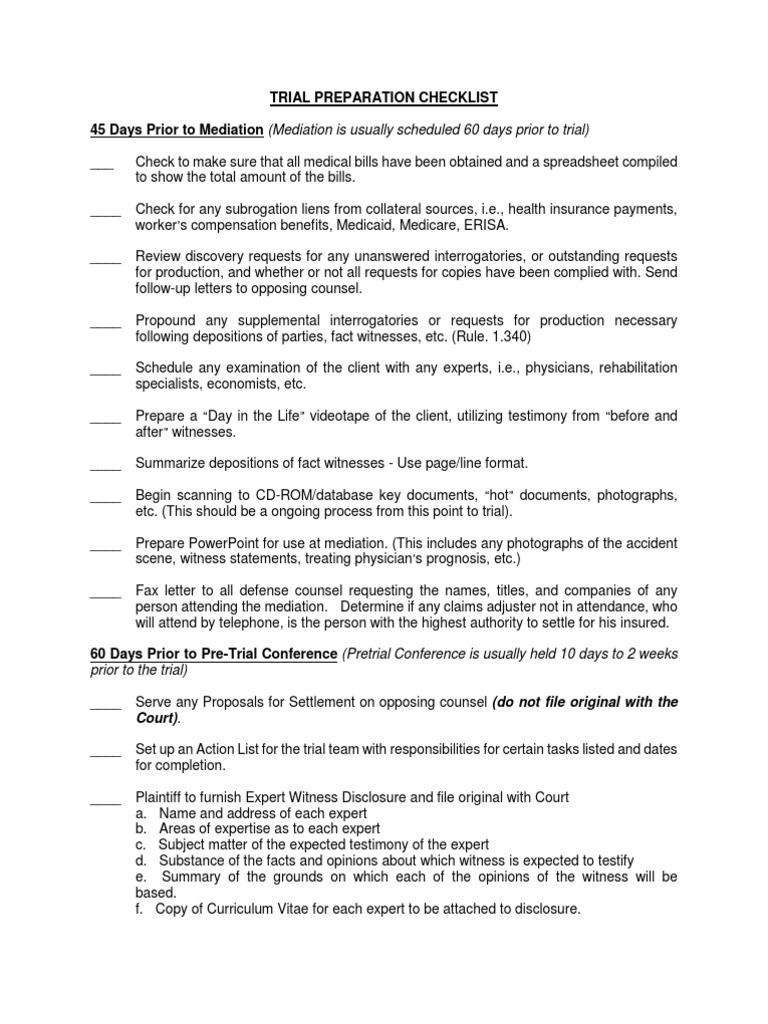Trial Preparation Checklist PDF Discovery (Law) Deposition (Law)