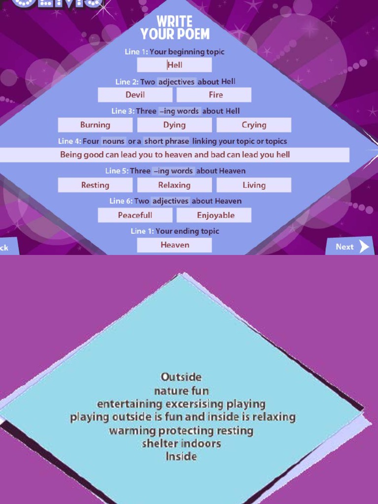 Web a diamante poem is a poem that is written in the shape of a diamond. Web antonym diamante poem this type shows the di˜erences between two opposite topics. Web to create a diamante poem, use the poem frame below, which asks you to use different parts of speech to describe your topic. It can be written based on a.