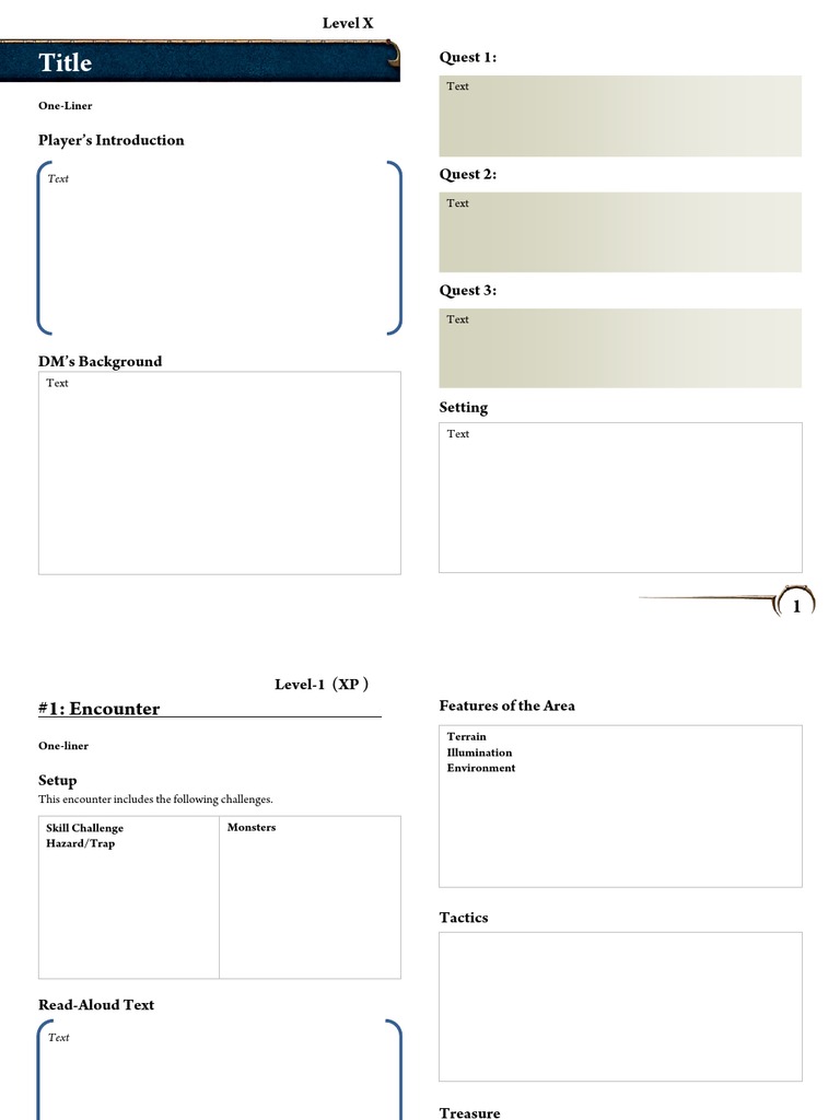Adventure Template 01 Dungeons & Dragons Role Playing Games