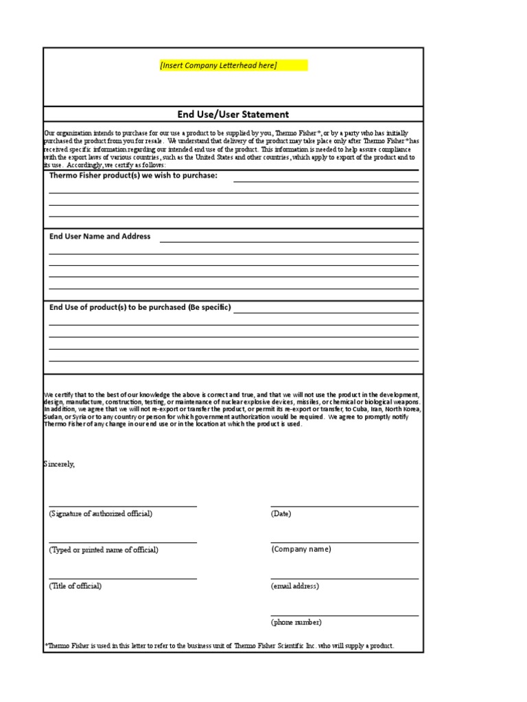 The information provided will only. If the end use is sent to the end. Form approved under omb control no. The certification should be signed by the purchasing company. Web end‐use checks on certain dual‐use and munitions exports.