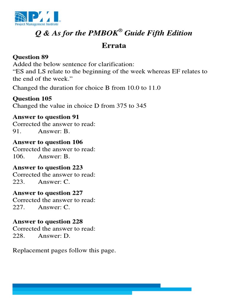 Errata sheets are commonplace in book. Web on this page you will find errata sheets to any pmi standards that require one.