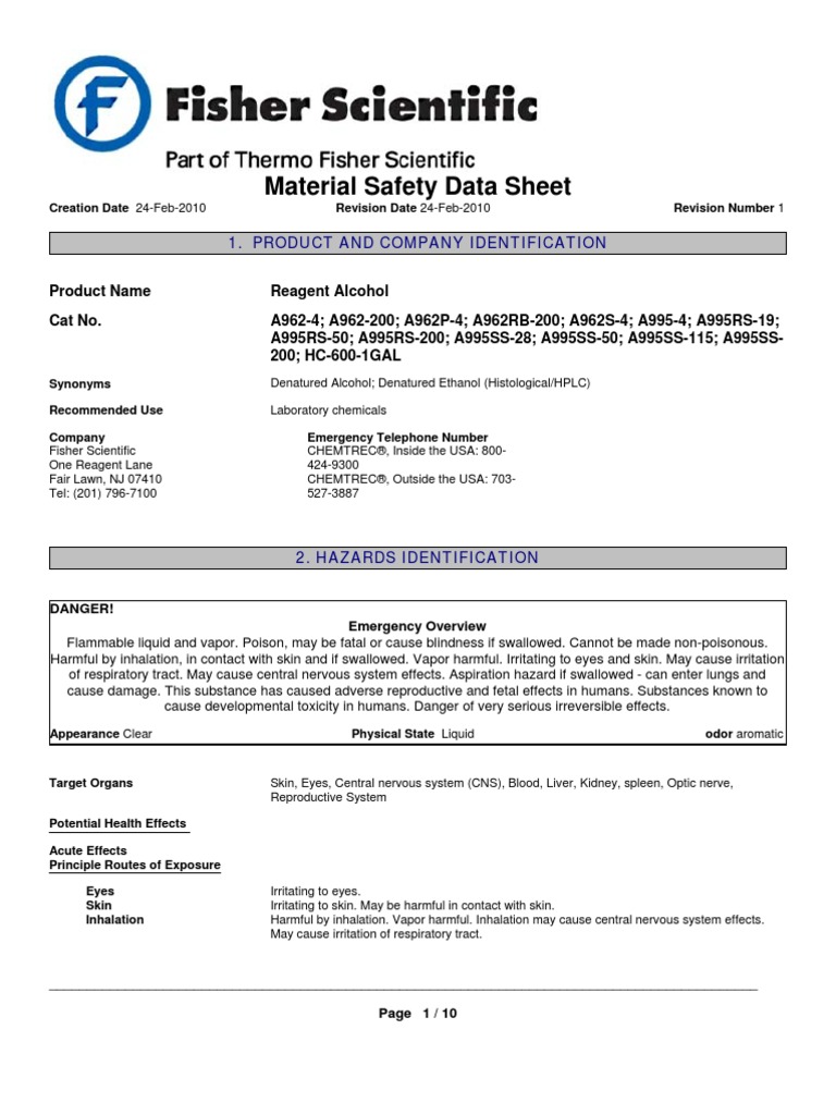 (PDF) ETHANOL MATERIAL SAFETY DATA SHEET Chemical Engineering
