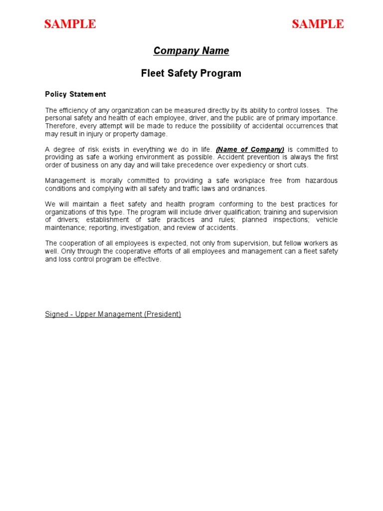 SAMPLE FLEET SAFETY PROGRAM Fill and Sign Printable Template Online