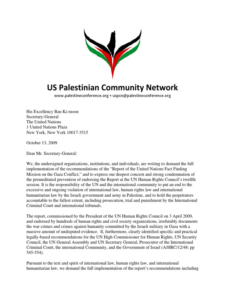 Palestine Community Network Letter to UN Palestinian Territories