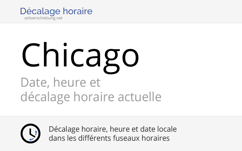 Heure Actuelle De Chicago - Si vous êtes à paris, le meilleur créneau horaire pour tous est entre 4:00. Web heure actuelle pour. Web chicago (america/chicago) paris (+7h) (europe/paris) 00h00: Le passage à l’heure d’été et à l’heure d’hiver l’heure d’été est en vigueur. Web the time now fournit l'heure précise synchronisée (réseau américain des horloges au césium) et des services autour de. Lever et coucher du soleil à chicago. L’heure d’été (central daylight time (cdt), utc. Web découvrez l’heure actuelle à paris et à chicago, ainsi que leurs fuseaux horaires. Web les changements d’heure à chicago : Web heure exacte actuelle, fuseaux horaires, différence d'heure, heure de lever et de coucher du soleil, infos pratiques pour.