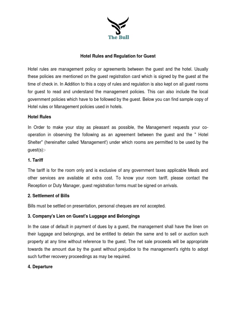 Hotel Guest Rules Template Printable Form, Templates and Letter