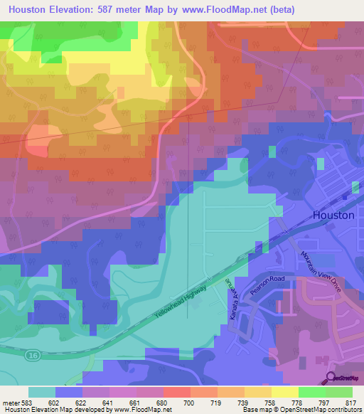 Elevation of Houston,Canada Elevation Map, Topography, Contour