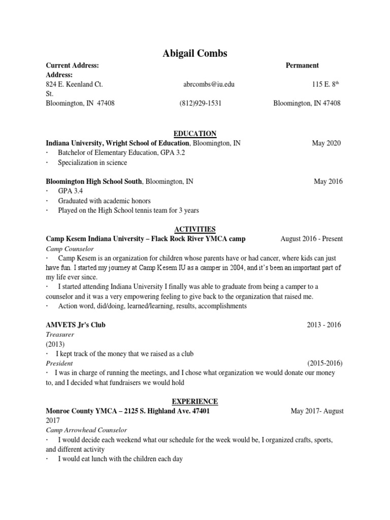 Resume Kelley Template PDF Indiana University Bloomington Change
