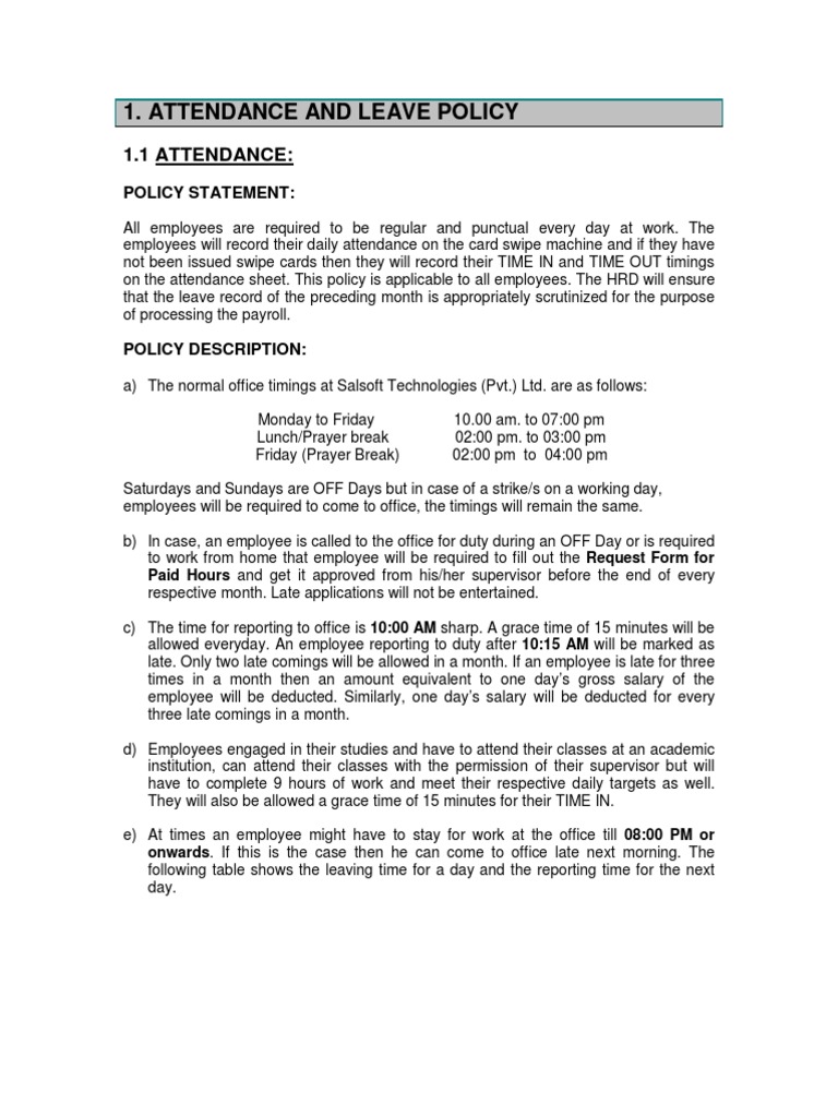 1. Attendance and Leave Policy Employment Salary