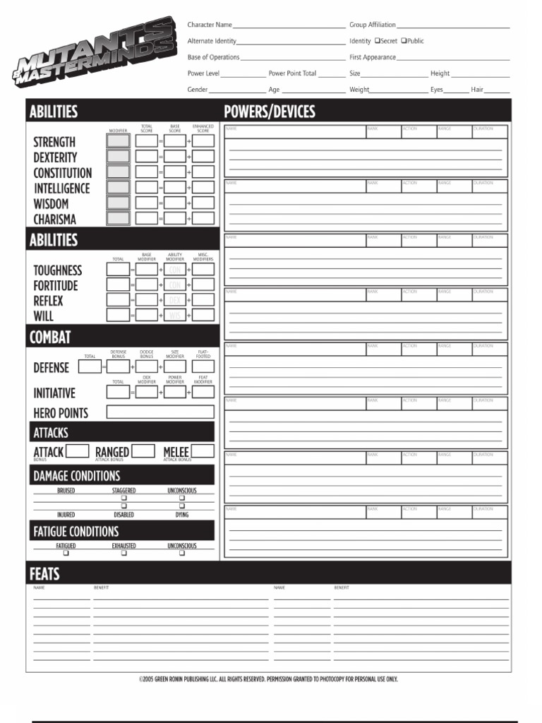 MUTANTS AND MASTERMINDS CHARACTER SHEET PDF