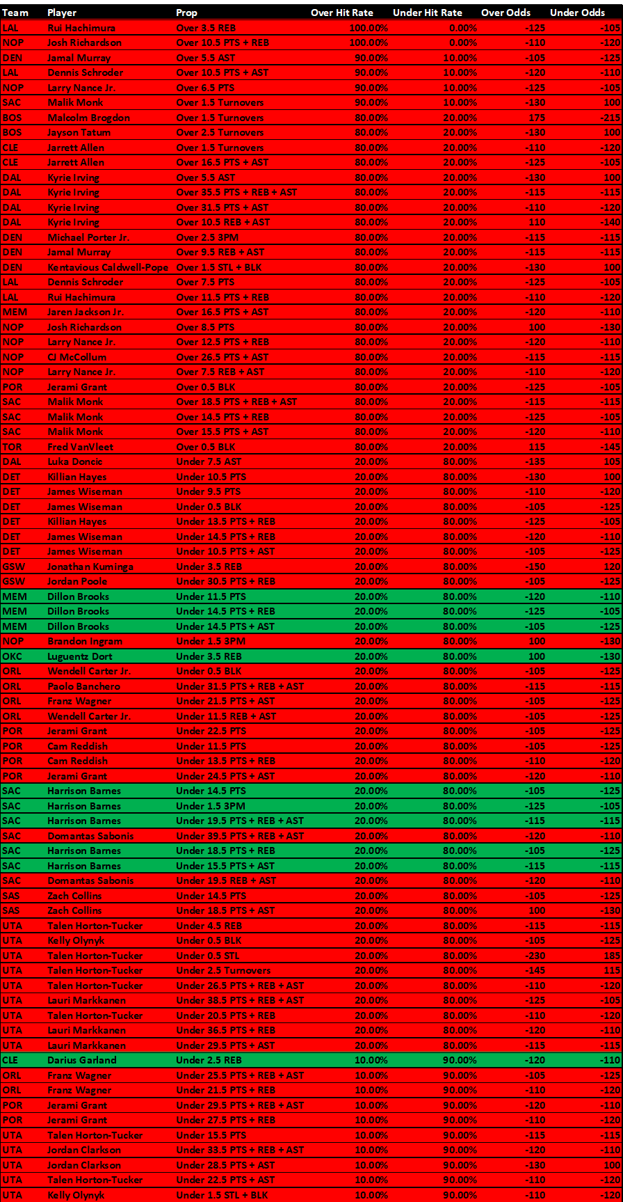 Trent on Twitter "NBA Player Prop Consistency Sheet 11/2 Jazz vs Mavs