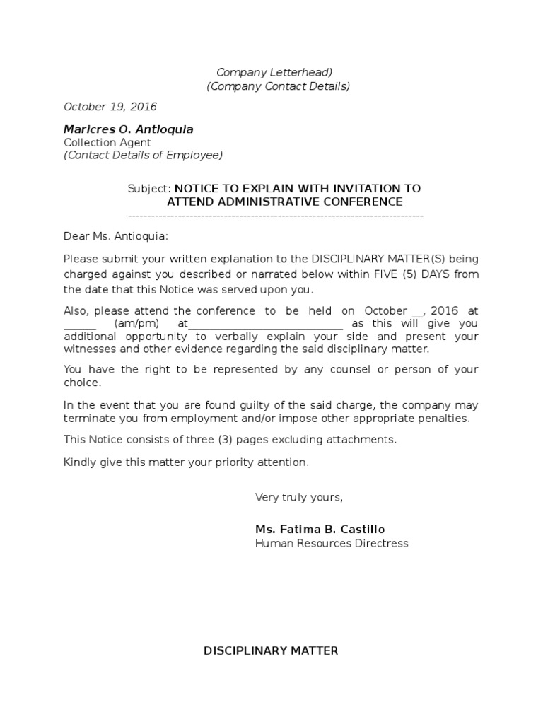 Notice To Explain Template