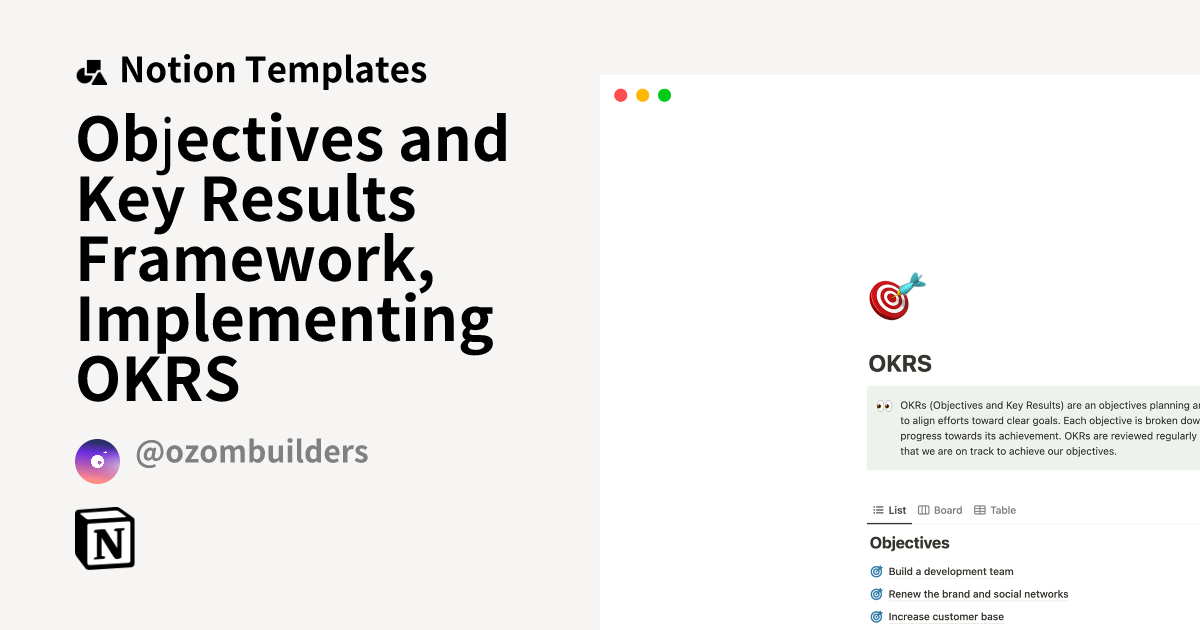 Objectives and Key Results Framework, Implementing OKRS Notion Template