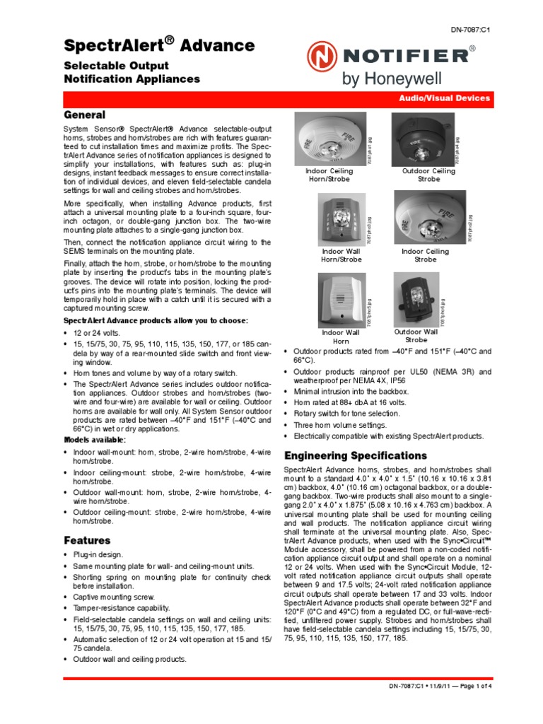Web general description the spectralert advance series of notification appliances offers a wide range of horns, strobes, and.