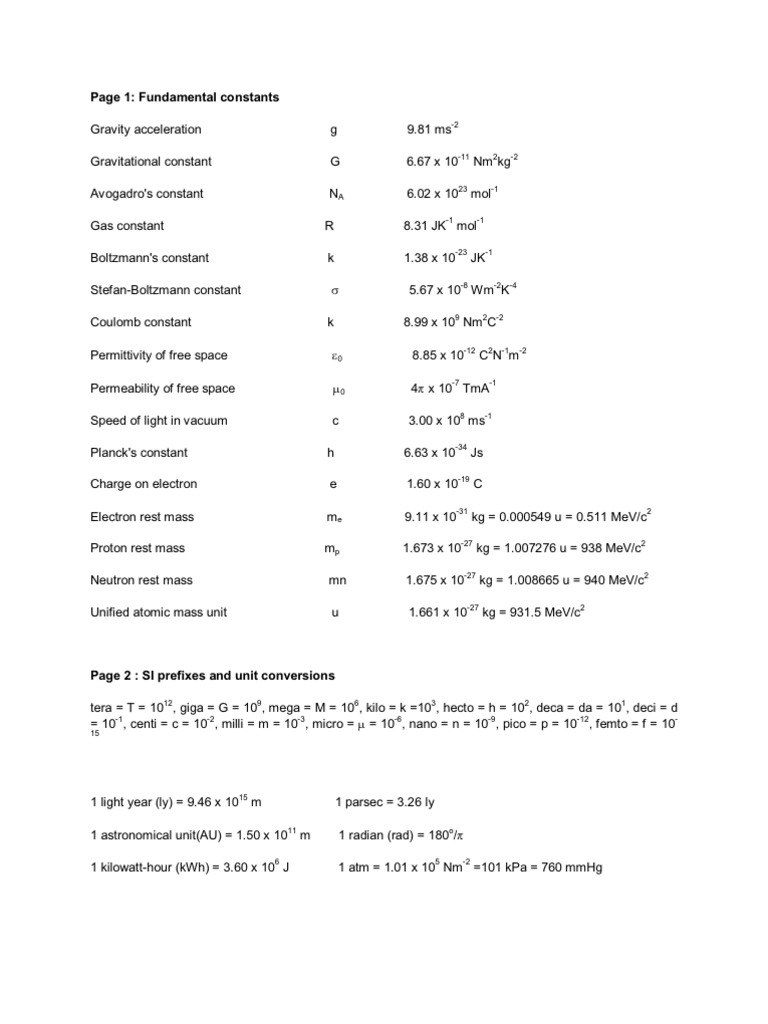 Spice of Lyfe Ib Physics Paper 1 Formula Booklet