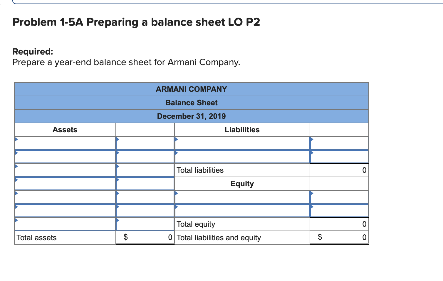 Prepare The Current Year-End Balance Sheet For Armani Company - Web armani company balance sheet december 31, 2019 assets liabilities cash accounts receivable supplies equipment 11,400. The following is selected financial.